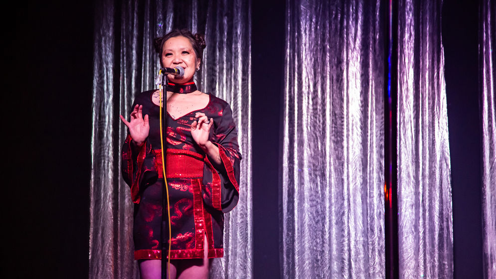 And OF COURSE we were absolutely thrilled to welcome prolific storyteller and everyone's favourite silver fox back to the stage: Gay Grandpa! He transported us through time and space: to the late 70s and Canada's Studio 54 equivalent, the Luv a Fair, where he worked as a cute young queer. Want to hear the story of the Night of Whistle? Stay tuned - we might just put it up on our Youtube sometime soon. Suffice to say, VIPs were happy to have their "Blow me and I'll Come" whistles by the end of Gay Grandpa's tale.